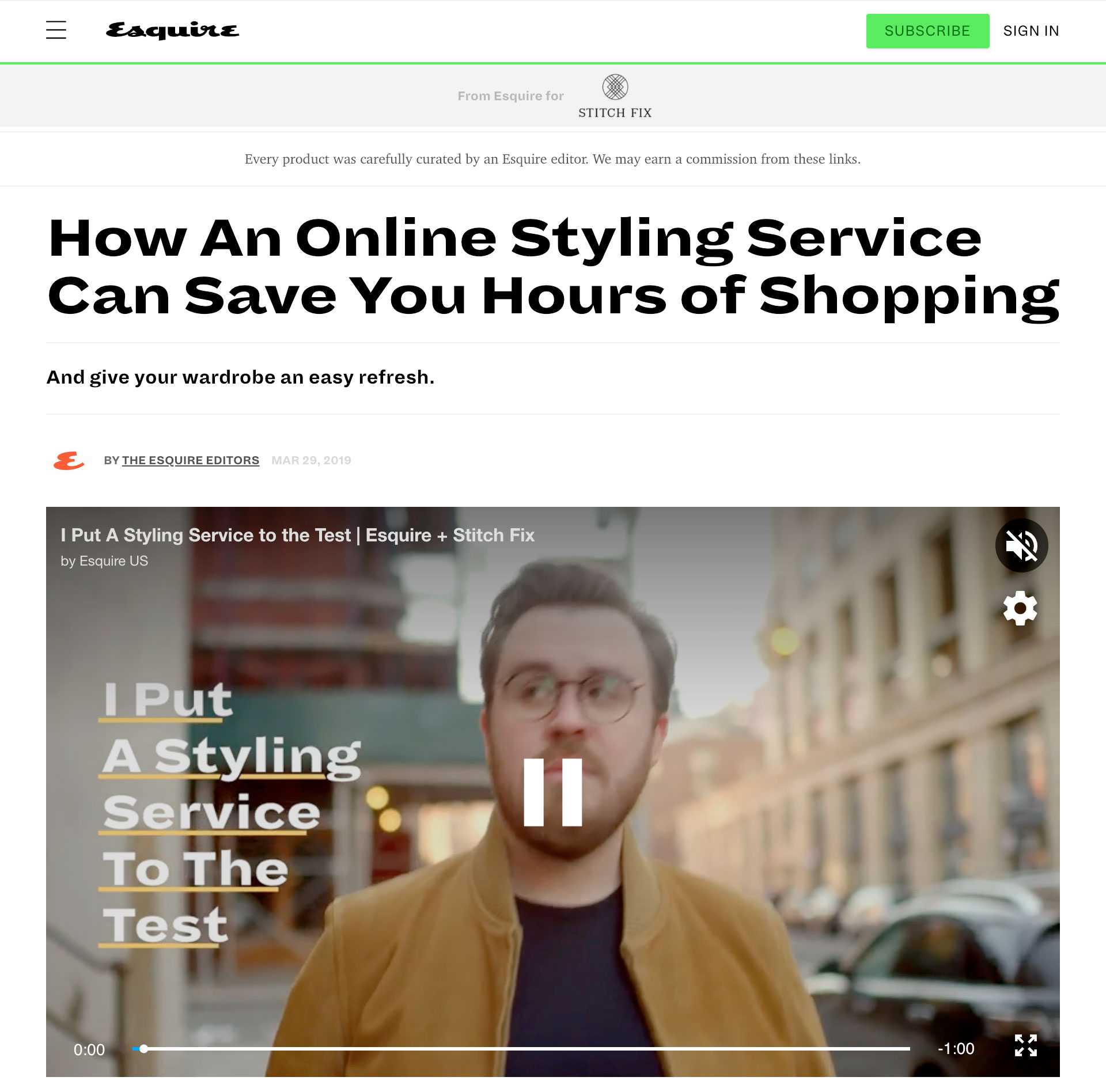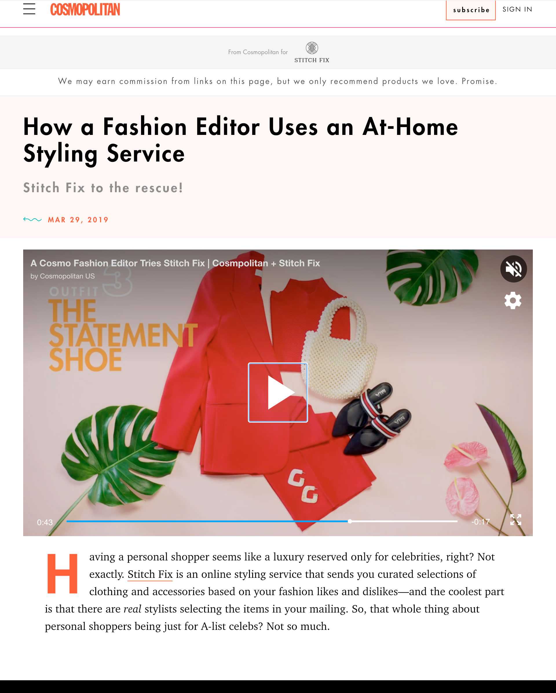We created a total of 15 Instagram posts and stories, one video, and two on-site articles based around Stitch Fix’s Red Carpet Runway. Additionally, we produced three videos and three articles where Esquire, Cosmo, and ELLE editors tried and reviewed the Stitch Fix service.